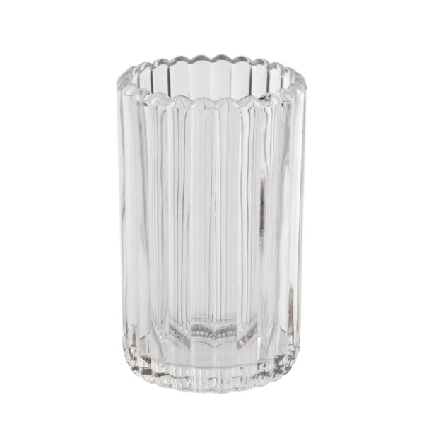 Bezbarwny lampion szklany w formie walca. Posiada podłużne pręgi wzdłuż powierzchni, które sięgają od podstawy aż po górny otwór lampionu. Produkt bardzo ładnie się prezentuje. Uniwersalny kolor sprawia, że znajdzie on zastosowanie w wielu stylowych aranżacjach.