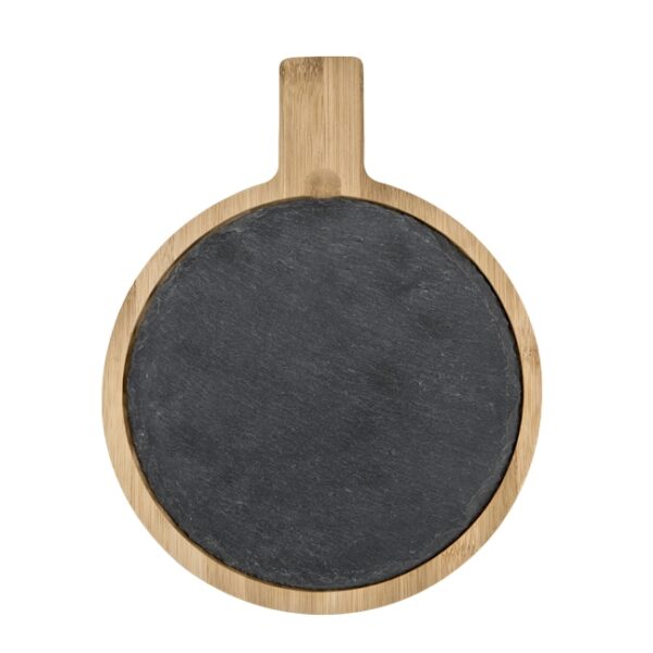 Deska wewnątrz posiada płytę łupkową, która dodatkowo dodaje jej uroku i modnego wyglądu.Płyty na bazie łupków są w ostatnim czasie bardzo pożądane. Serwowanie potraw na płytach łupkowych to HIT SEZONU.