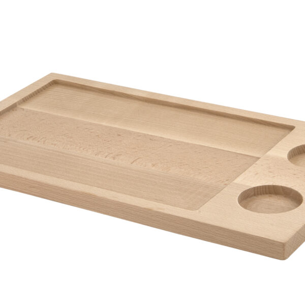 Deska do serwowania potraw, przystosowana do płyt łupkowych i innych kamiennych.Płytę umieszcza się wewnątrz wyciętego prostokąta.