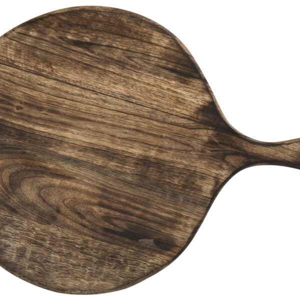 Okrągła, drewniana deska do serwowania.