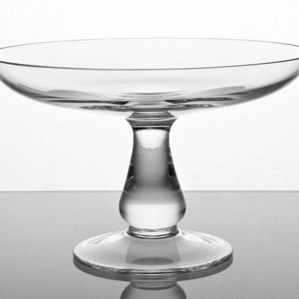 Szklana patera na wysokiej nóżce. Wyprodukowana przez firmę Krosno, która od lat dostarcza na rynek wysokiej jakości szklane produkty użytkowe i ozdobne. Krosno cechuje wysoka jakość wykonania oraz duże bogactwo modeli i wzorów.