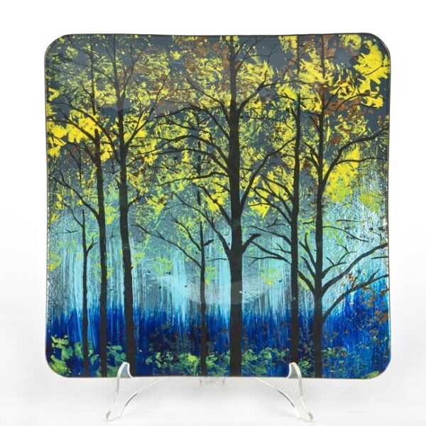 Ręcznie malowany, szklany talerz dekoracyjny. Zachwyca kolorem i urzeka wyglądem. Bardzo funkcjonalny element dekoracji domu. Talerz można skompletować z innymi produktami kolekcji o tym samym wzorze.Na spodzie talerza umieszczone są miękkie, antypoślizgowe stopki, dzięki którym mamy pewność, że produkt nie zarysuje żadnej powierzchni.
