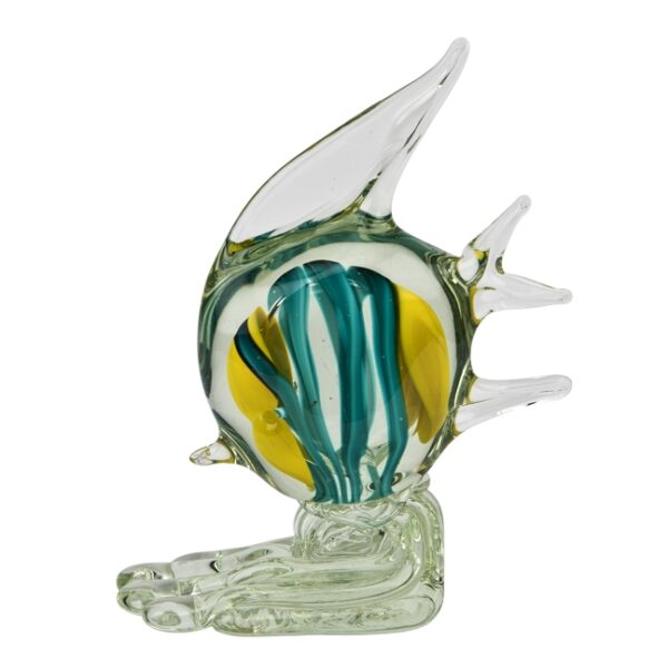 Dekoracja szklana w kształcie ryby. Produkt wykonany został z kolorowego szkła bardzo precyzyjnie, z dbałością o najmniejsze szczegóły. Ryba przepięknie się prezentuje również za sprawą ciekawych odcieni szkła.
