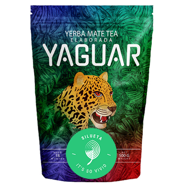 Yerba Mate Yaguar Silueta składa się głównie z dużej ilości listków i patyczków oraz średniej ilości pyłu. Oprócz tego w suszu znajdziemy składniki wspomagające odchudzanie. Zielona herbata Gunpowder przyspieszy spalanie tłuszczu, Czystek zmniejszy poziom złego cholesterolu. Mięta złagodzi dolegliwości a Lapacho przyspieszy przemianę materii. W smaku możemy wyczuć lekko dymną nutę przeplataną mocno ziołowym akcentem. Yerba jest delikatna w smaku, więc polecana jest szczególnie osobom rozpoczynającym przygodę z yerba mate. Yerba suszona dymem, sezonowana przez około 18 miesięcy.Składniki: Ostrokrzew paragwajski, liście mięty, herbata gunpowder, czystek, lapacho, naturalny wegański aromat. Kraj pochodzenia: ArgentynaSPOSÓB PARZENIA:Napełnij naczynie suszem do 3/4 objętości, następnie przykryj dłonią górną część naczynia. Odwróć naczynie i potrząśnij tak, by pył z suszu znalazł się na ręce. Delikatnie odwróć naczynie do pierwotnej pozycji, uważając, by zawartość nie zmieniła swego położenia. Umieść bombillę w naczyniu i zalej wodą o temperaturze 70-80 stopni Celsjusza. Odczekaj 2-3 minuty. Po tym czasie yerba mate jest już gotowa. Należy pić ją powoli przez bombillę. Naparu nie powinno się mieszać.