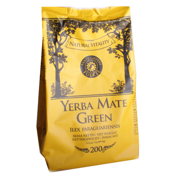 Mate Green Fuerte to propozycja dla wszystkich miłośników ziołowych mieszanek w łagodniejszej wersji. Susz składający się głównie z grubo ciętych listków z minimalną ilością patyczków suszony jest powietrzem. Taki rodzaj suszenia zagwarantuje nam łagodny smak i eliminację goryczy. Oprócz tego, w składzie znajdziemy pobudzającą guaranę, catuabę, jagody goji, aromatyczne liście miłorzębu japońskiego oraz porzeczki. W smaku wyczujemy głównie ziołowo-owocową nutę która idealnie sprawdzi się zarówno na ciepło jak i w postaci terere. SPOSÓB ZAPARZANIA:Napełnij naczynie suszem do 3/4 objętości, następnie przykryj dłonią górną część naczynia.Odwróć naczynie i potrząśnij tak, by pył z suszu znalazł się na ręce.Delikatnie odwróć naczynie do pierwotnej pozycji, uważając, by zawartość nie zmieniła swego położenia.Umieść bombillę w naczyniu i zalej wodą o temperaturze 70 stopni Celsjusza.Odczekaj 2-3 minuty. Po tym czasie mate jest gotowa. Należy pić ją powoli przez bombillę. Naparu nie powinno się mieszać.Składniki: yerba mate, catuaba, guarana, jagody goji, liście miłorzębu japońskiego, liście porzeczki, aromat. Kraj pochodzenia: Brazylia