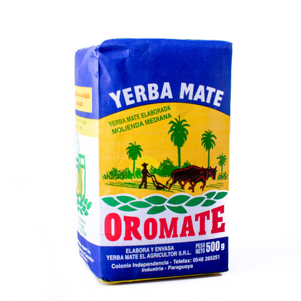 Oromate Molienda Mediana to klasyczna, paragwajska yerba mate charakteryzująca się wyczuwalną, cierpką oraz goryczkową nutą, przeplataną nieco kwaskowym posmakiem z delikatnie wyczuwalnym dymnym-drzewnym aromatem z wędzoną nutą. Susz składa się z drobno zmielonych listków i dużej zawartości pyłu. Yerba przeznaczona dla osób szukających mocnego pobudzenia.Skład: 100% ostrokrzew paragwajskiKraj pochodzenia: ParagwajSposób zaparzania:Napełnij suszem naczynie od 1/2 do 3/4 objętości, następnie przykryj dłonią górną część naczynia.Odwróć naczynie i potrząśnij tak, by pył z suszu znalazł się na ręce.Delikatnie odwróć naczynie do pierwotnej pozycji, uważając, by zawartość nie zmieniła swego położenia.Umieść bombillę w naczyniu i zalej wodą o temperaturze 70-80 stopni Celsjusza.Odczekaj 2-3 minuty.Po tym czasie mate jest gotowa. Należy pić ją powoli przez bombillę. Naparu nie powinno się mieszać.