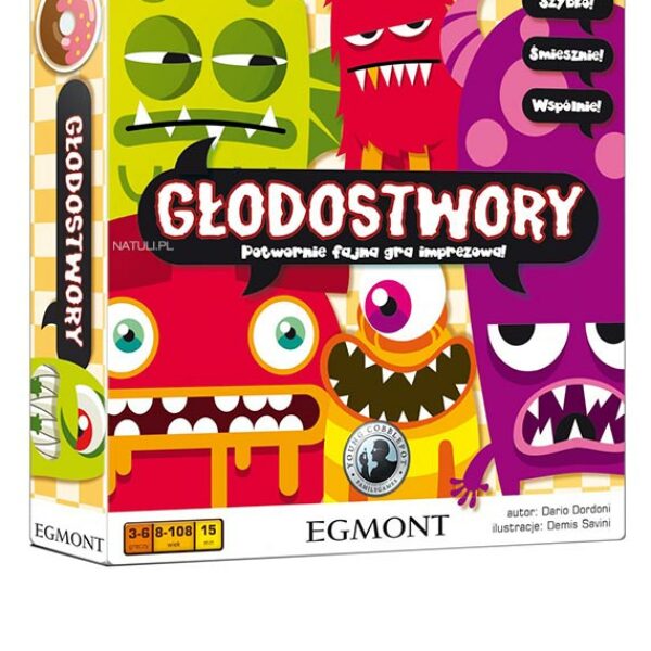 Zwariowana gra kooperacyjna!Szybkie tempo rozrywki!Różne poziomy trudności!Zostań kucharzem w knajpie dla potworów. To dobry biznes, choć klienci są monstrualnie wymagający. Lubią zjeść tłusto i dużo, im obrzydliwsza potrawa – tym lepsza. Na dodatek nie lubią zbyt długo czekać. Dlatego gdy tylko zamówienie pojawi się w kuchni, wszyscy kucharze muszą się bardzo spieszyć. Tłumaczenie się z opóźnień tłumom głodnych stworów nie jest zabawne (ani bezpieczne) Gracze muszą nakarmić wszystkie głodostwory znajdujące się w kolejce klientów, zanim przesypie się piasek w klepsydrze. W grze nie występuje rywalizacja między graczami, ponieważ wszyscy mają wspólny cel. Aby go zrealizować, gracze muszą szybko wykonywać swoje tury i współpracować tak, by jeden z graczy mógł zagrać w swojej turze odpowiednią kombinację dań. Dozwolone są dyskusje, umawianie się, a nawet koordynowanie działań przez jednego z graczy.(Cała instrukcja do pobrania w zakładce Dodatki)Elementy gry:- 2-minutowa klepsydra- 64 karty dań i 24 karty akcji- 21 kart głodostworów- 1 karta szefa kuchniLiczba graczy: 3-6 osóbWiek graczy: 8-108 lat