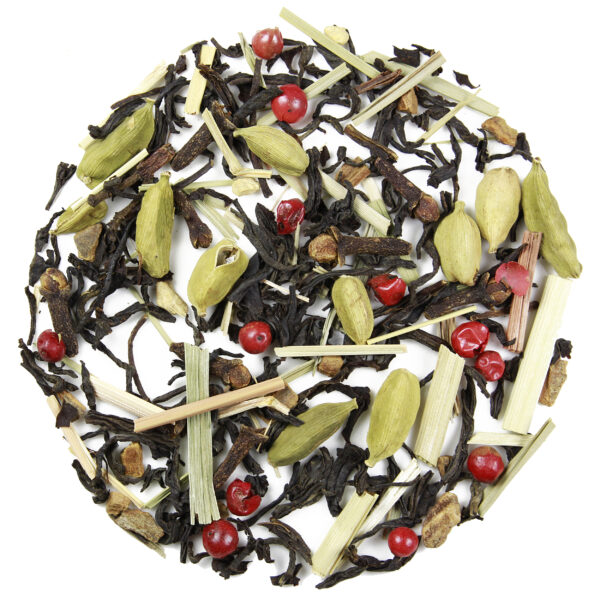 W języku hindustani, Masala Chai oznacza aromatyczną, dodawaną do herbaty, kompozycję specyficznych dla Indii ziół lub przypraw.Ta niezwykle bogata mieszanka oparta jest na bazie uprawianej u podnóży Himalajów herbaty Assam. Dodatek egzotycznych przypraw między innymi anyżu, kardamonu i gałki muszkatołowej sprawia, że każda kropla tego aromatycznego naparu przenosi nas w zaczarowany świat orientu. Przyprawia o zawrót głowy swoim bogactwem smaków, kolorów, zapachów...!Obecność imbiru, cynamonu, goździków, a przede wszystkim ziarenek czerwonego pieprzu, dodaje całości wyraźnej pikanterii.Korzenny, wyrazisty smak Masala Chai idealnie komponuje się z ciastem śliwkowym lub szarlotką podaną na ciepło, z bitą śmietaną i kulką lodów orzechowych. Ze względu na rozgrzewającą moc orientalnych przypraw, polecamy ją szczególnie na chłodne poranki i zimne wieczory.