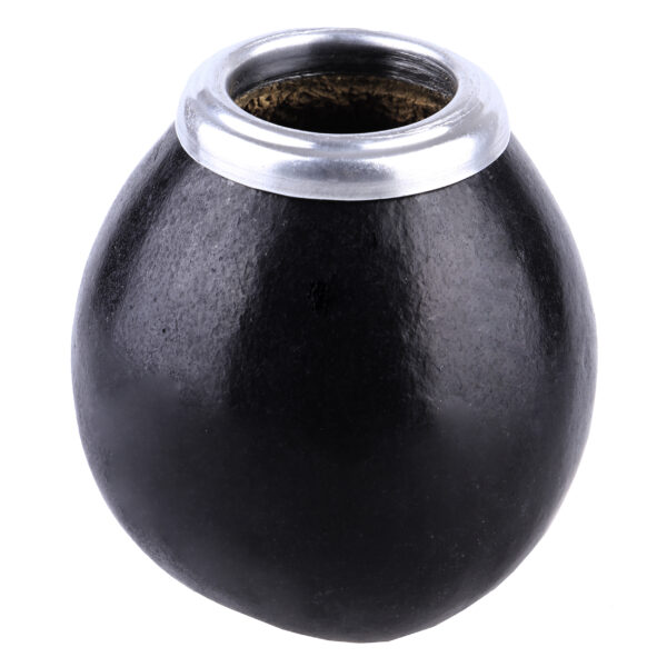 Calebasse to tradycyjne indiańskie naczynie używane do parzenia i spożywania naparu zwanego Yerba Mate. Korzysta się z niego zawsze w połączeniu z przyrządem zwanym Bombilla. Calebasse wykonuje się z tykwy owocu o tej samej nazwie. Z niego też wykonano egzemplarz dostępny w naszej ofercie. Jedynie widoczna na zdjęciu górna obręcz wytworzona została z metalu. Jej obecność zapobiega wykruszaniu się tykwy w jej najbardziej narażonych na uszkodzenia miejscach. Przed pierwszym parzeniem Yerba Mate w Calebasse naczynie trzeba przygotować. Proces ten polega na wypełnieniu tykwy w 2/3 suszem Mate i zalaniu wrzątkiem. Całość należy pozostawić na 24 godziny, a następnego dnia zeskrobać powstały przez noc osad z wewnętrznych ścianek naczynia. Dobrym pomysłem będzie powtórzenie tego procesu raz jeszcze w celu uzyskania lepszego efektu. Po takim zabiegu Calebasse uzyskuje specyficzne właściwości do picia mate. Uwaga: Nie gwarantujemy, iż Calebasse dostarczone do Państwa będzie odpowiadało fotografii pod względem kształtu oraz koloru, gdyż jest to wyrób naturalny. Calebasse ma pojemność około 250 ml.