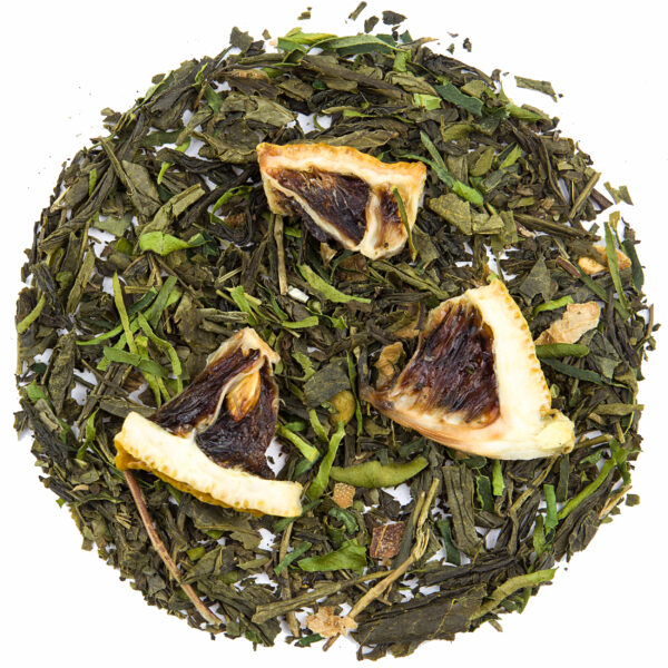 Letnie orzeźwienie to długo wyczekiwana mieszanka, idealna na doskwierające upały. Szczególnie polecana do przyrządzenia tzw. herbaty mrożonej, czy też "parzonej" na zimno". Świeżość i rześkość tej herbaty zawdzięczamy dodatkom w postaci cytryny, mięty i liści limonki. Całość oparta na wysokiej jakości suszu herbaty zielonej Sencha.