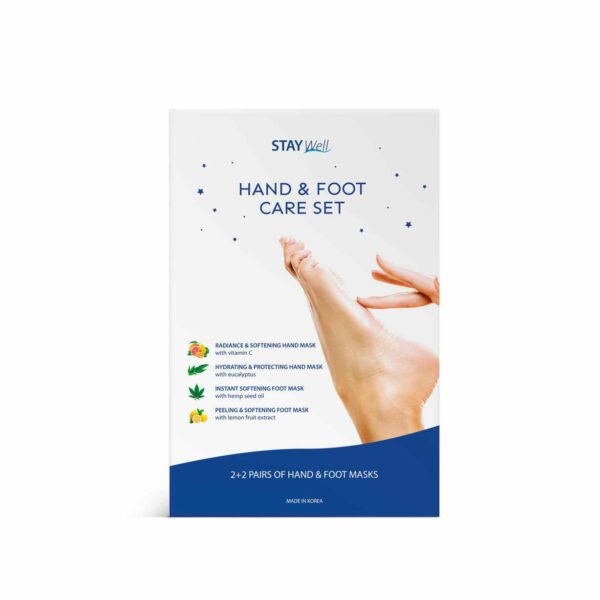Zestaw składa się z czterech maseczek, zapewniających kompleksową pielęgnację skóry dłoni i stóp.