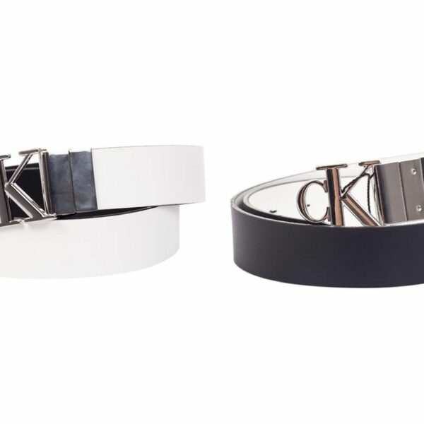 CALVIN KLEIN DAMSKI PASEK DO SPODNI 2 w 1 MONO ROUND REV PLAQUE 30MM BLACK/WHITE K60K607737 00Z