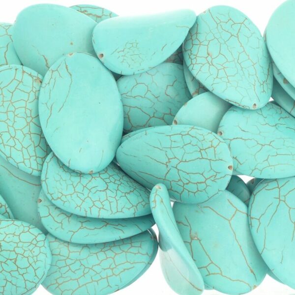 Duży, lekki koralik z howlitu w kształcie skręconego płaskiego owalu - chipsa, w kolorze turkusu, bardzo dobrej jakości. Pięknie wybarwiony.