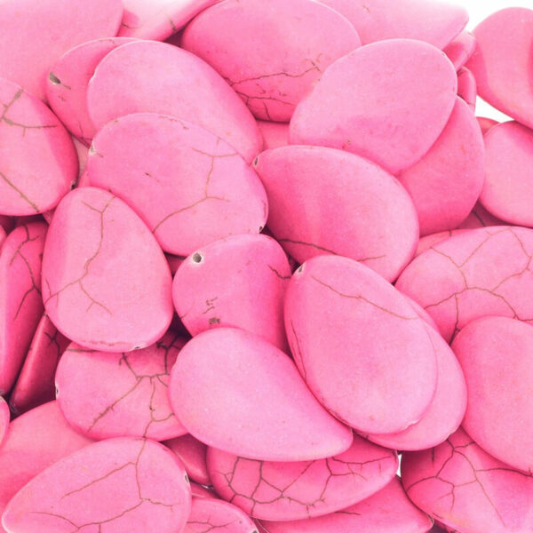 Duży, lekki koralik z howlitu w kształcie skręconego płaskiego owalu- chipsa, w kolorze intensywnego różu, bardzo dobrej jakości. Pięknie wybarwiony.
