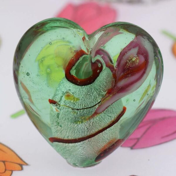 Serca ze szkła weneckiego (wykonane techniką murano, ze srebrną folią w środku), bardzo dobrej jakości. Ze względu na ręczne wykonanie istnieją niewielkie różnice pomiędzy poszczególnymi koralikami.