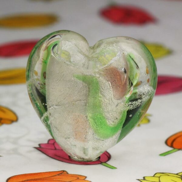 Serca ze szkła weneckiego (wykonane techniką murano, ze srebrną folią w środku), bardzo dobrej jakości. Ze względu na ręczne wykonanie istnieją niewielkie różnice pomiędzy poszczególnymi koralikami.