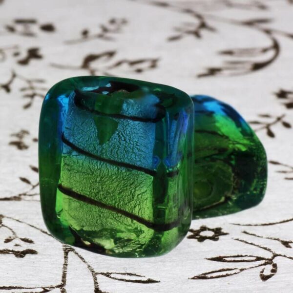 Kafelki ze szkła weneckiego zielono-niebieskie 18x16x8mm 2szt SZWEKAK008