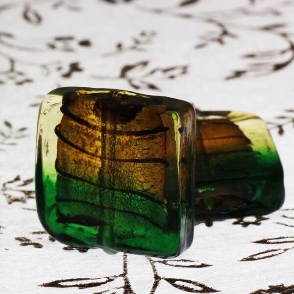 Kafelki ze szkła weneckiego złoto-zielone 20x20x8mm 2szt SZWEKAK010