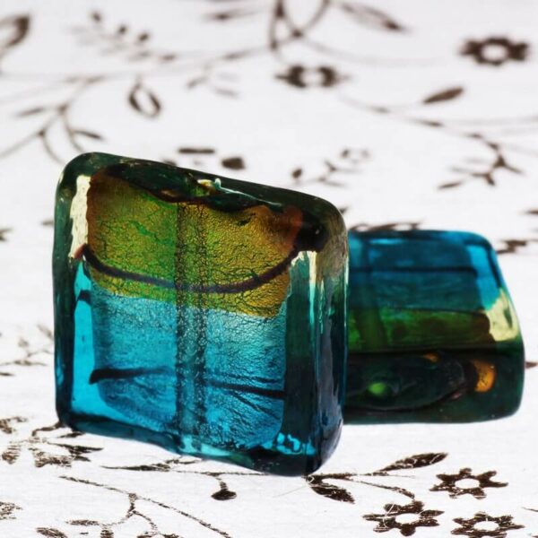 Kafelki ze szkła weneckiego złoto-turkusowe 20x20x8mm 2szt SZWEKAK050