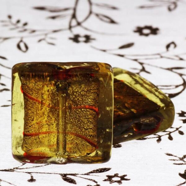 Koraliki kafelki ze szkła weneckiego. Srebrny środek jest opleciony spiralką ze szkła w kontrastującym kolorze.