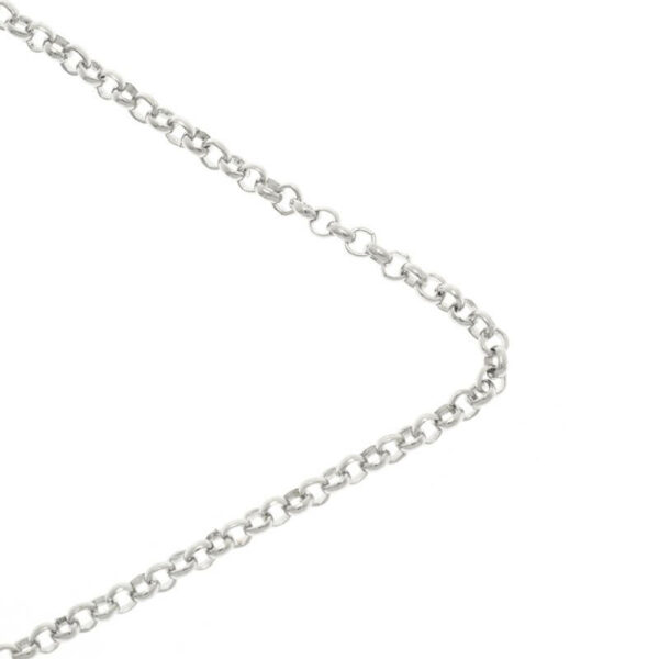 Bardzo drobny łańcuszek typu rolo w kolorze platynowym. Łańcuszek wykonany z równych, okrągłych oczek o średnicy 2.5 mm. Grubość oczka to 0,8mm. Łańcuszek wygląda bardzo delikatnie, wykonany starannie, z powłoką przedłużającą trwałość. Sprzedawany na metry, ze szpuli w jednym kawałku. Dzięki okrągłym oczkom stosunkowo łatwo jest zamontować kółka montażowe i zapięcia.