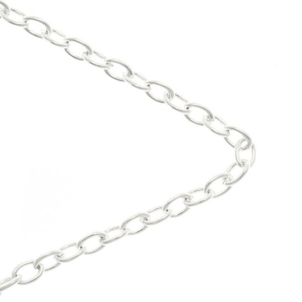 Łańcuszek typu ankier w kolorze srebrnym. Wykonany z równych, owalnych oczek o wymiarach 3.5 mm na 4.8 mm. Grubość drutu to 0,8mm. Łańcuszki bardzo starannie wykonane, z powłoką przedłużającą trwałość. Sprzedawane na metry, ze szpuli w jednym kawałku. Łańcuszki dość masywne, do bransoletek z charmsami, masywnych wisiorków, jako łańcuszki dystansowe... Szpula 90m.