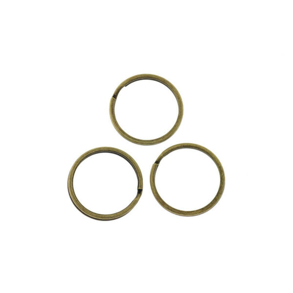 Kółka do kluczy, półfabrykaty do breloków. Kółka o średnicy 25 mm wykonane z profilowanego drutu w kolorze antycznego brązu.