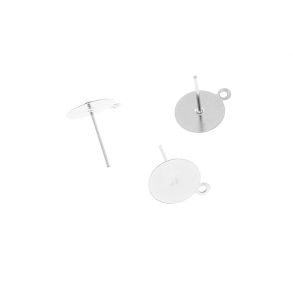 Bazy sztyftów z talerzykiem o średnicy 10 mm do przyklejania małych kaboszonów i innych elementów do biżuterii i oczkiem do podwieszenia. Podstawy do budowy sztyftów, do wklejania, podklejania kaboszonów i innych elementów.