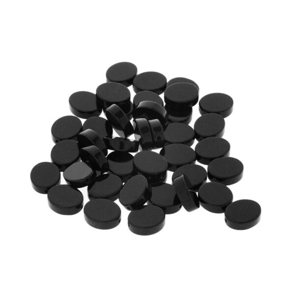 Małe owalne koraliki, płaskie z zaznaczonym brzegiem, idealnie układają się w naszyjnikach i pięknie prezentują w bransoletkach. Bardzo dobrej jakości, pięknie szlifowany głęboko czarny onyks.