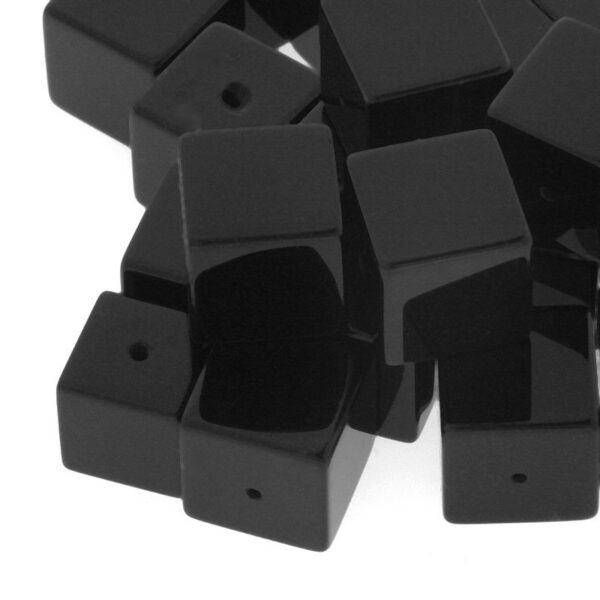 Koraliki z onyksy w kształcie kostki o wymiarze 14 mm. Bardzo dobrej jakości, pięknie szlifowany głęboko czarny onyks.