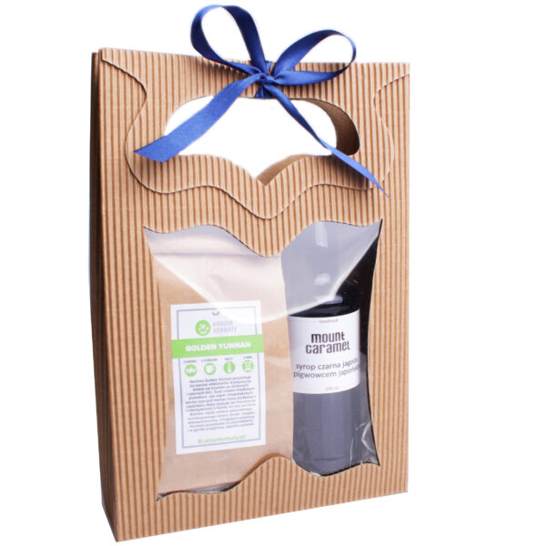 Pyszny zestaw podarunkowy opakowany w gustowne, kartonowe pudełeczko z kokardką. Ten gotowy zestaw, to dobry pomysł na prezent dla każdego. Pudełeczko zawiera opakowanie 100 gramów smakowitej herbaty Kenia Milima oraz syrop cynamonowy.