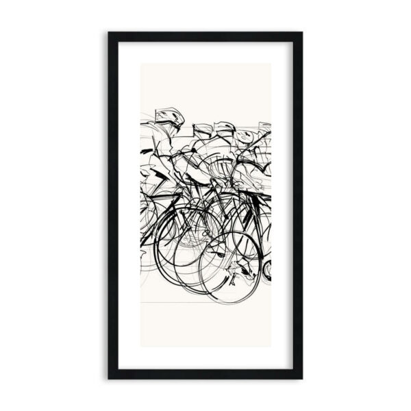 Kilka kresek prostych, kilka krzywych i mamy portret peletonu zdążającego do zwycięstwa. Biało-czarna kompozycja jest tak ascetyczna, że aż przyciąga uwagę...
