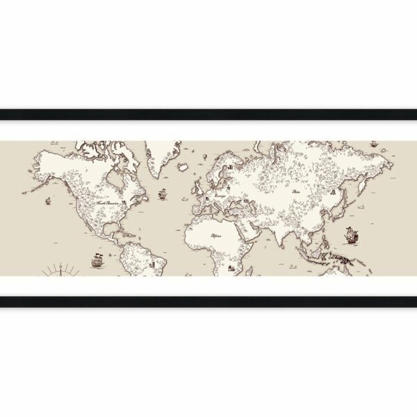 Obraz w ramie - Podróż dookoła świata - 100x40 cm (1 element) typ AB - Rama koloru czarnego