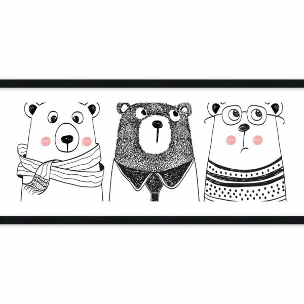 Obraz w ramie - Miś, misiaczek i misio - 100x40 cm (1 element) typ AB - Rama koloru czarnego