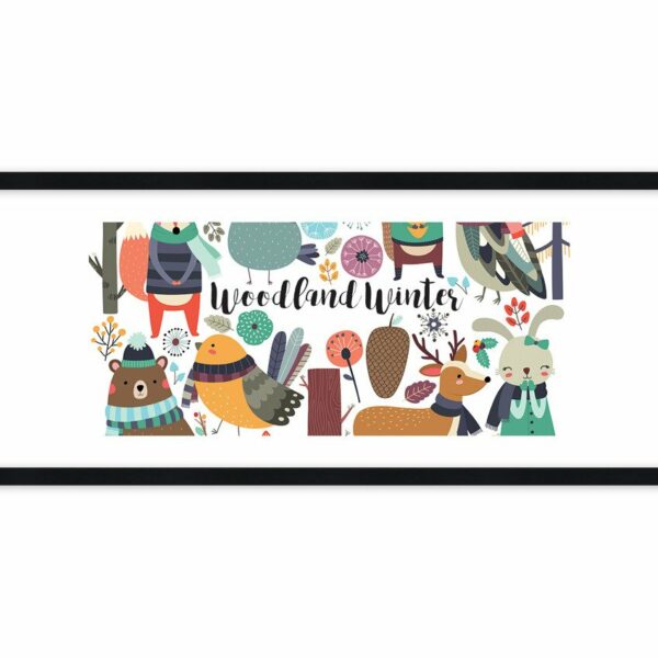 Obraz w ramie - Bajkowe święta w lesie - 100x40 cm (1 element) typ AB - Rama koloru czarnego