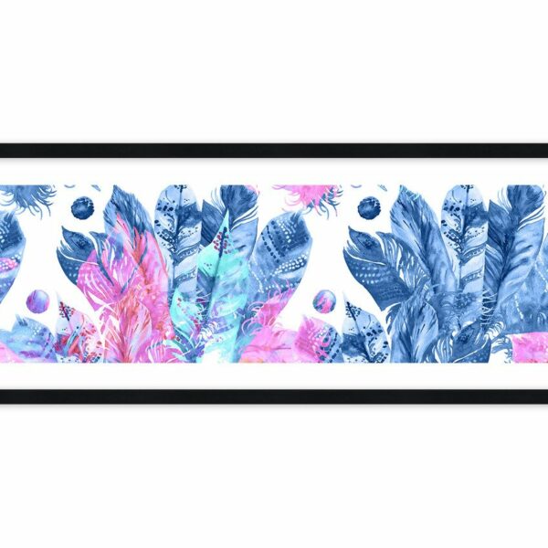 Obraz w ramie - Pióropusze w różu i błękicie - 100x40 cm (1 element) typ AB - Rama koloru czarnego