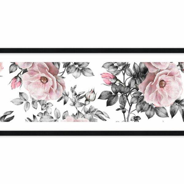 Obraz w ramie - Zagubić się w kwiatach róż - 100x40 cm (1 element) typ AB - Rama koloru czarnego