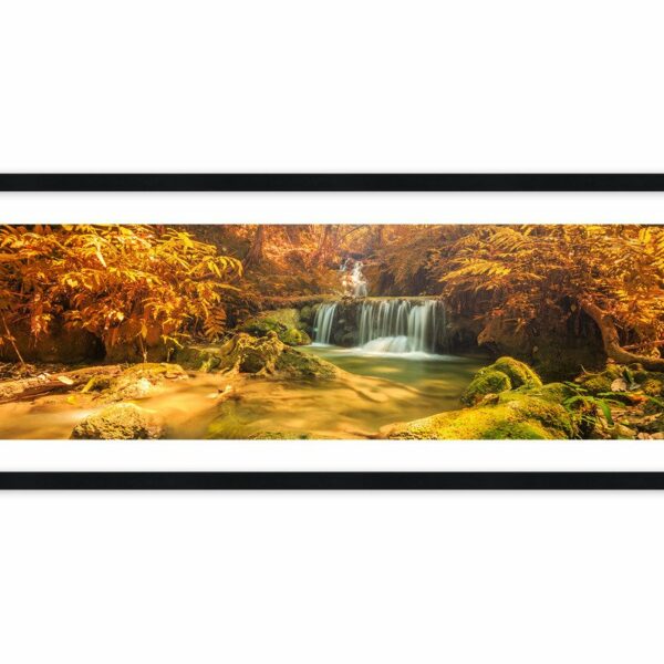 Obraz w ramie - Leśna kaskada w złocie - 100x40 cm (1 element) typ AB - Rama koloru czarnego