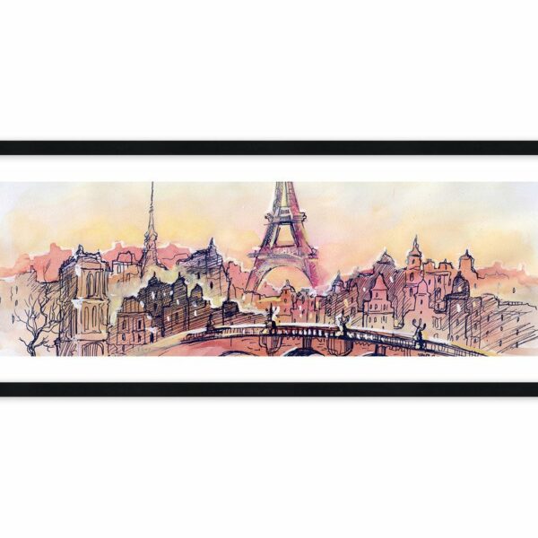 Paryż, miasto miłości, tym razem w pastelach. Królująca nad miastem wieża Eiffla i most na Sekwanie przyciągają spojrzenie…