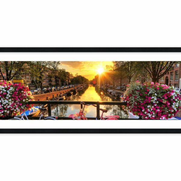 Obraz w ramie - Wiosenny poranek w Amsterdamie - 100x40 cm (1 element) typ AB - Rama koloru czarnego