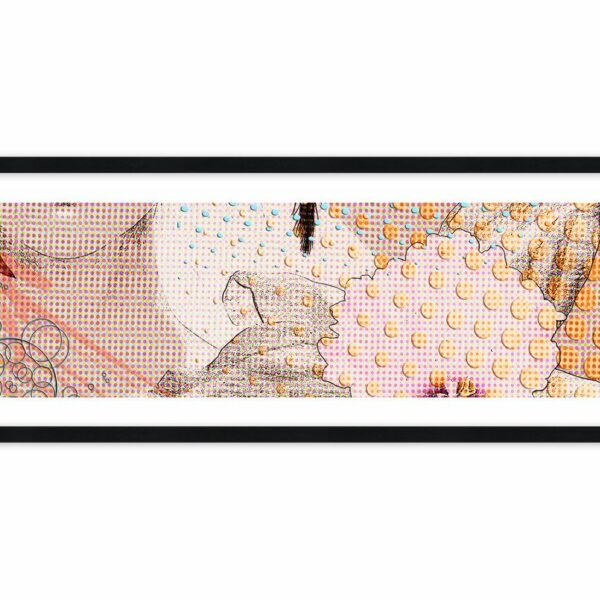 Bohaterka komiksów i romansów. Karminowe usta przyciągają uwagę. A perforowany materiał tła, daje wrażenie trójwymiarowości…