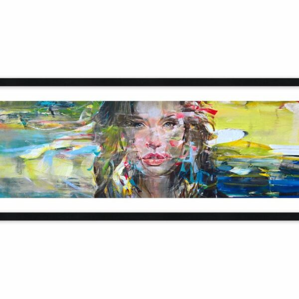 Piękny portret tajemniczej kobiety w zasłonie mgły, rozedrganych chmur i plam kolorów. Zachwyć się urodą kobiety i blaskiem użytych barw…