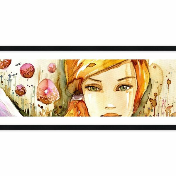 Akwarelowy portret młodej dziewczyny o złotych włosach i szmaragdowych oczach. Jej melancholijne spojrzenie wzbudza troskę u innych, ale również uczucie tęsknoty…