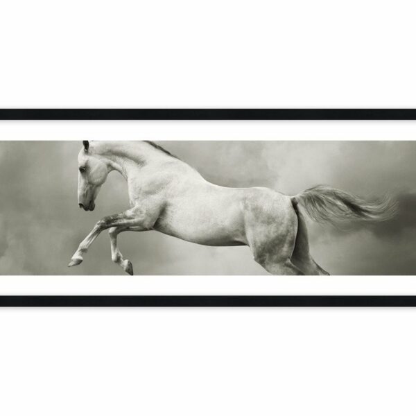 Czy koń w galopie może być jeszcze piękniejszy? Biało-szara kolorystyka podkreśla lekkość, zwinność i urodę dzikiego zwierzęcia…