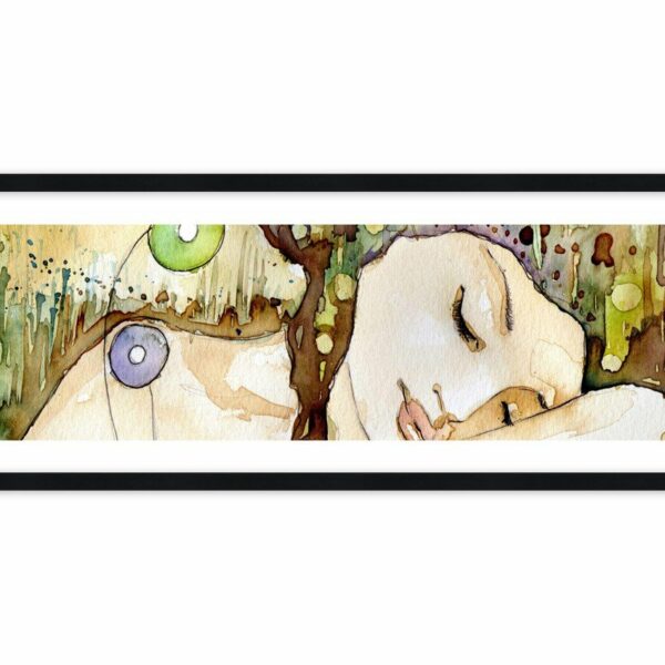 Akwarelowy portret młodej dziewczyny o brązowych włosach. Można poczuć tęsknotę za snem tak spokojnym jak jej…