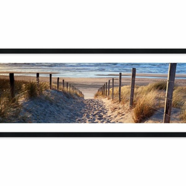 Obraz w ramie - Morza szum, ptaków śpiew, dzika plaża pośród traw… - 100x40 cm (1 element) typ AB - Rama koloru czarnego