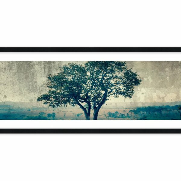 Obraz w ramie - Jabłoń na błękitnym błoniu? - 100x40 cm (1 element) typ AB - Rama koloru czarnego