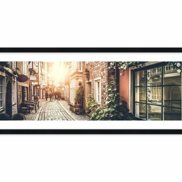 Obraz w ramie - Różany zaułek w różowym blasku - 100x40 cm (1 element) typ AB - Rama koloru czarnego
