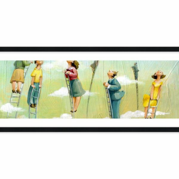 Postaci jak z bajek i jak w bajce podążające za marzeniami. Las drabin z osobami wchodzącymi po nich, by dosięgnąć marzeń. Wybierz jedną, a może na jej końcu znajdziesz coś cennego?