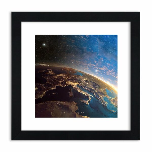 Ziemia w blasku wschodzącego słońca. Spójrz jak pięknie rysują się kontynenty, góry, morza i oceany. A gwiazdy dodają jeszcze większego blasku…